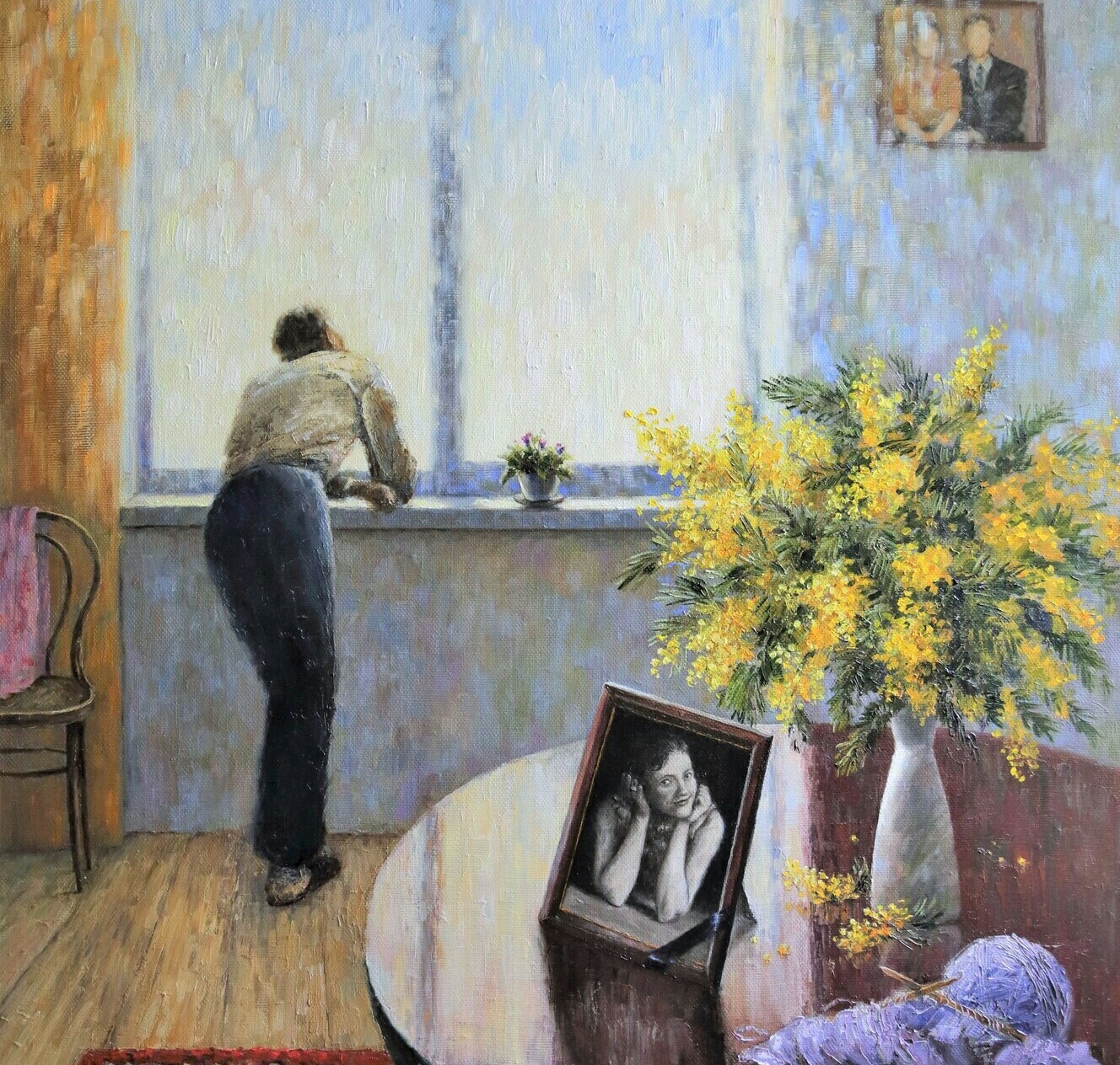 Мимоза для жены. 2018 г. Х/м 90х80 см.